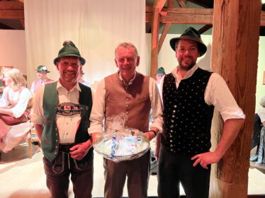 Er schaffte es zum wiederholten Male, dass die Bühne mit Spitzen-Musikanten und -Sängern, und der Saal mit einem großartigen Puplikum gefüllt war. Heuer mit dabei war die Saitenstrassen-Musi. Sechs junge Musikanten aus Nußdorf und Miesbach, die zwischendurch auch mit einem Gitarren-Duo glänzten. Gerade im Oktober wurden sie beim Internationalen Alpenländischen Volksmusikwettbewerb mit dem „Herma-Haselsteiner-Preis“ ausgezeichnet. Das ist die höchstmöglichste Auszeichnung. Genau das gleiche Prädikat erhielt vor zwei Jahren der Oimbliah-Dreigsang. Drei fesche Freundinnen, die im Gesang eine große Leidenschaft miteinander teilen. Nicht umsonst nennte Moderator Christoph Prankl die drei die würdigen Nachfolger der bekannten Fischbachauer Sängerinnen. Ebenfalls mit von der Partie waren die Adlgasser Sänger aus Inzell. Vier gestandene Mannsbilder, die mit ihren Liedern zur stimmungsvollen Atmosphäre im Moarhof beigetragen haben. Eigens für diesen Abend hat sich die Baschtler-Ziachmusi zusammengetan. Eine neu gegründete Formation, die mit Maxi Binder und Quirin Kaiser zwei ortsansässige Spitzen-Zaichspieler vereinte. Zwischendurch wurde das Programm mit viel Witz, Charm und so manch interessanter Anekdote von Elisabeth Kronsteiner aufgelockert. Christoph Prankl übernahm heuer zum letzten Mal die Organisation dieser beliebten Veranstaltung und wurde im Anschluss an den Abend von den Trachtenvereins-Vorsitzenden Martin Schober und Max Maurer mit einem Präsentkorb und anerkennenden Worten gewürdigt. Ein Nachfolger für ihn war jedoch gleich gefunden. Niemand geringerer als Quirin Kaiser wird in seine Fußstapfen treten und hoffentlich viele Jahre dafür sorgen, dass der Hoagart in Roßholzen ein Puplikumsmagnet bleiben wird.