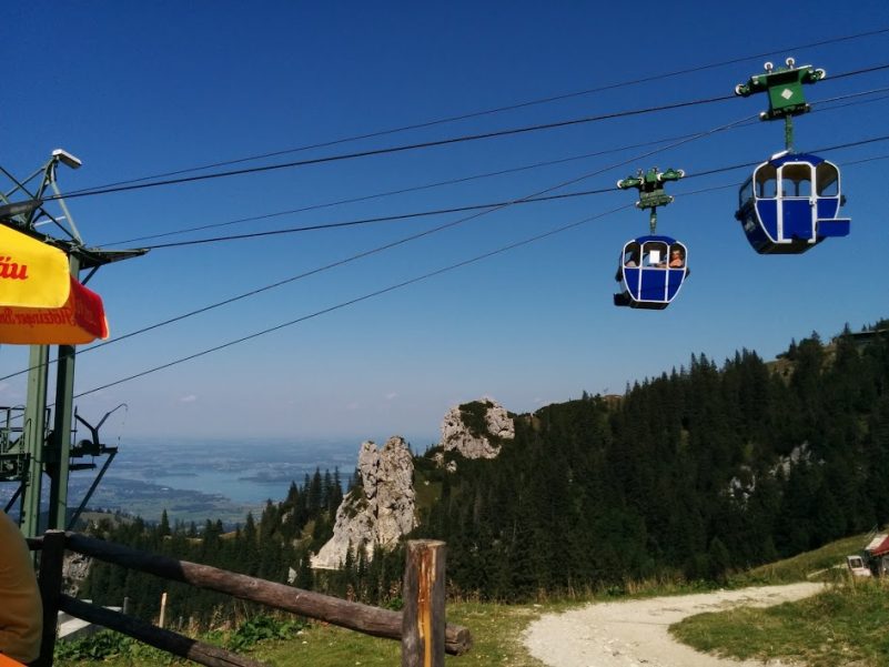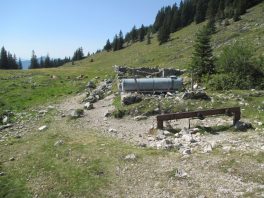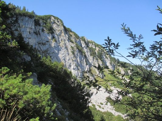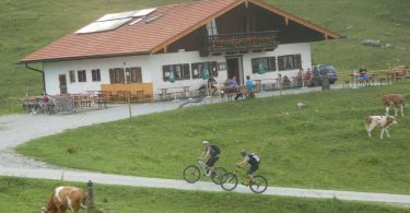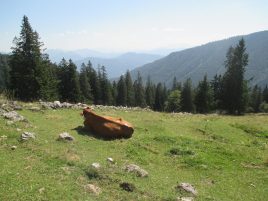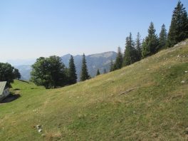 Zurück gehen wir ein auf demselben Weg wie beim Aufstieg hinunter bis zum Waldrand, halten uns dann nach links und kommen auf den markierten Weg von der Hofbauernalm zur Kampenwand Bergstation. Auf einem sehr schönen, aussichtsreichen Höhenweg, vorbei am alten Standort der Hofbauernalm, wandern wir gemütlich unterhalb der Bauernwand und Scheibenwand hinüber Richtung Kampenwand Bergstation . In der benachbarten Möslarnalm genehmigen wir uns noch ein Weißbier, bevor wir über die Schlechtenbergalm hinunter zum Auto in Hohenaschau laufen.