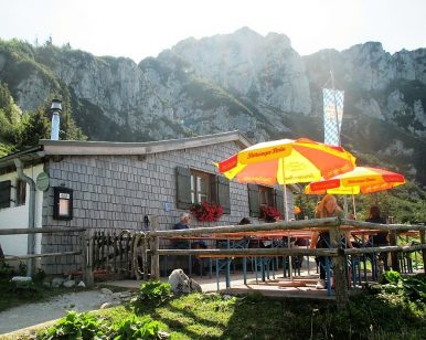 Die Sonnenwendwand ist neben der viel besuchten Kampenwand ein weniger bekannter, aber sehr lohnender Berg in den Chiemgauer Alpen mit einzigartigem Bergpanorama. Wir lassen das Auto auf dem Parkplatz bei der Festhalle in Hohenaschau stehen und fahren mit deb Bus das kurze Stück bis Hainbach, vo wo wir auf schattigem Fahrweg durch den Klausengraben in einer guten Stunde die Dalsenalm erreichen. Dann folgen wir der Markierung Richtung Hofbauernalm, kommen vorbei an der Dalsen-Diensthütte und sind nach 1 weiteren Stunde Aufstieg auf schönem, aussichtsreichen Steig bei der herrlich gelegenen Hofbauernalm.