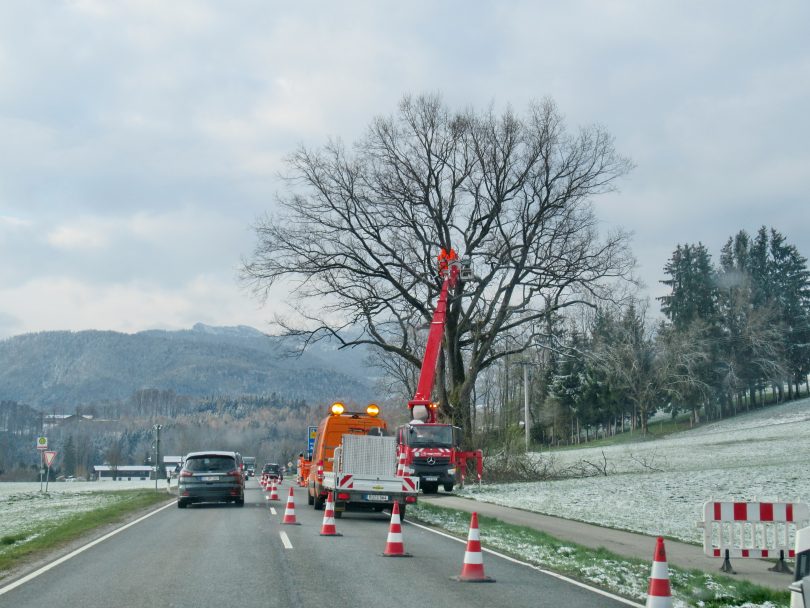 “Sicherheit auf hohem Niveau” oder “Abgehobener Arbeitsplatz” – so könnte man bei der Betrachtung des Arbeitseinsatzes auf der Straße zwischen Prien und Bernau diese Bilder bezeichnen. Damit die Sicherheit für die Autofahrer nicht nur gegenüber anderen Verkehrsteilnehmern, sondern auch gegenüber den großen Bäumen entlang der Strecke gewahrt bleibt werden immer wieder Kontroll- und Ausbesserungsmaßnahmen durchgeführt. Für diese Aktionen müssen die Mitarbeiter des staatlichen Straßenbauamtes auch mal hoch hinaus. Die Verbindung zwischen Prien und Bernau gehört im übrigen zu den meistbefahrenen Straßen im Landkreis Rosenheim.