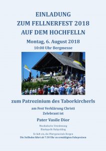 Immer am 6. August findet zum Patrozinium des Taborkircherls am Fest „Verklärung Christi“ auf dem Hochfelln das Fellnerfest statt. Beginn ist um 10 Uhr mit der Bergmesse, die Gestaltung übernehmen als Zelebrant Pater Vasile Dior und die Blaskapelle Ruhpolding. Zu diesem von der Pfarrgemeinde Bergen organisierten Festtag fährt die Seilbahn ab 7.30 Uhr zu ermäßigten Preisen.