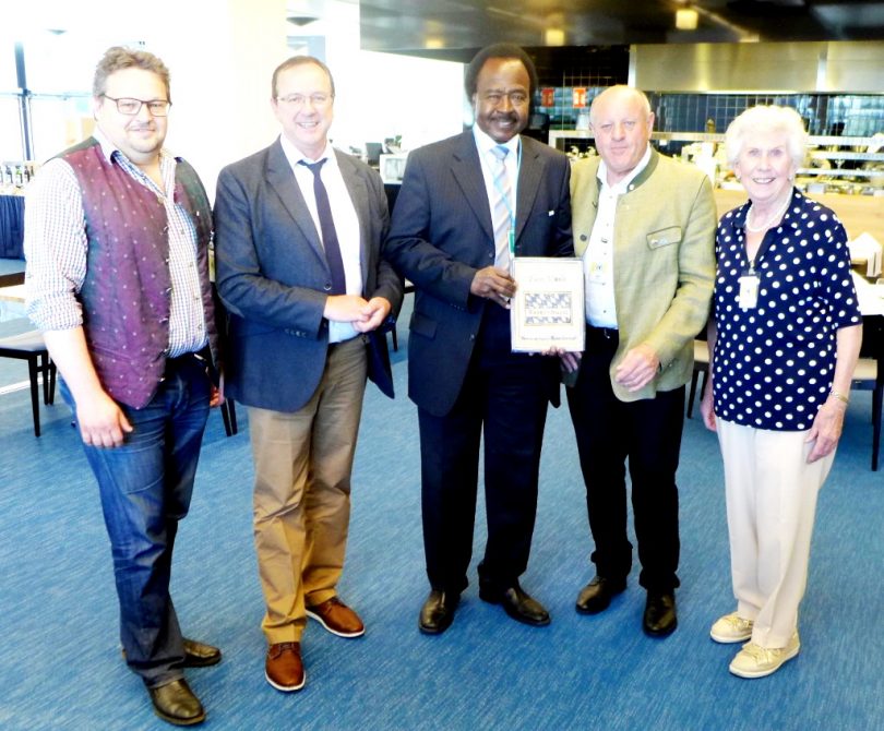 Foto: von links: Norbert Zehrer, stellvertretender Bayernbund-Kreisvorsitzender Rosenheim, Dr. Josef Siegele, DI Abdalla Sharief, Kreisvorsitzender Christian Glas und Bayernbund-Ehrenmitglied Elfriede Göppelhuber