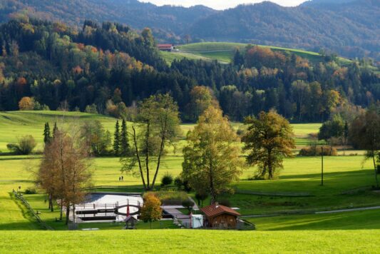 Die Hochriesbahn entstand 1973. In der Gipfelregion war ein groß angelegtes Wintersportzentrum geplant, finanziert von Anteilseignern, denen lebenslange Freifahrten auf allen Bahnen und Liften versprochen wurden. Das reizte auch mich, und so investierte ich 5.000 Deutsche Mark, erspart aus meinen Olympia-Berichterstattungen. Doch der Ausbau wurde nie genehmigt – Naturschutz und Lawinengefahr standen im Weg. Die Gondelbahn blieb ein isoliertes, alpines Unikum. Dass sie nur über den offenen Sessellift erreichbar ist und nicht mit dem Auto, schränkt ihre Attraktivität weiter ein. Lediglich der „Bikerpark“ mit seinen Schanzen zieht inzwischen ein wachsendes Publikum an.
