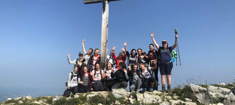 Drei Gipfel an drei Tagen – Hochries, Feichteck und Heuberg – waren die Ziele der freiwilligen Wanderung für Schülerinnen aus den 7. und 8. Klassen der Städtischen Realschule für Mädchen Rosenheim. Mit dem Bus fuhren vierzehn Schülerinnen zusammen mit Organisatorin Anette Dippold und Bergwanderführerin Manuela Großhauser nach Grainbach. Bei kühler, nebliger Witterung ging es über die Doaglalm, die Seitenalmen bis zur Hochries (1.569 Hm) mit herrlichster Fernsicht und Sonne pur. In den wunderbar renovierten Lagerzimmern zu drei bis vier Personen wurde die Nacht verbracht. Am nächsten Tag verlief die Wanderung weiter über den Karkopf auf den Feichteck-Gipfel (1.514 Hm). Bergwanderführerin Manuela Großhauser erklärte auf dem Weg die Bedeutung der Almwirtschaft, zeigte Bergkräuter und ihre Heilkraft, die den Sennerinnen früher als einzige Heilmittel zur Verfügung standen. Ab dem Feichteck-Gipfel führte der Wanderweg dann immer bergab, über die Feichteckalm, die Wagneralm in die Euzenau. Dort fanden die Füße eine herrliche Abkühlung im kleinen Flüsschen, das sich dort schlängelt. Die letzten Höhenmeter wieder hinauf zu den Daffnerwaldalmen waren dann dank der gekühlten Füße gar kein Problem mehr. In der Lagleralm bezog die Wandergruppe ihr Quartier für die zweite Nacht, bevor es tags darauf wieder zurück nach Rosenheim ging.