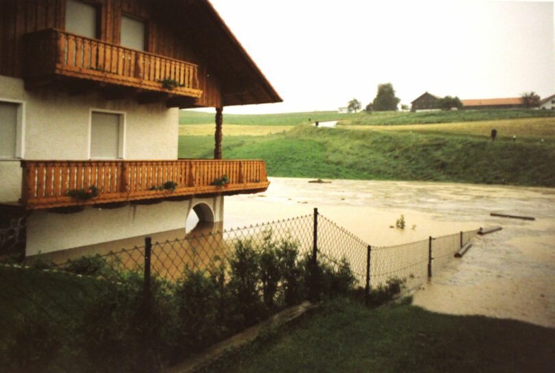 Titelbild: Überflutung 1987 im Bereich der Rothenaicherstraße in Erlbach (Bild: Strasser)