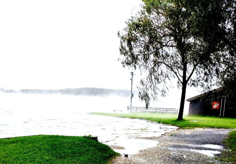 Das vermehrte Wasser sorgt derweil für viele veränderte Landschaftseindrücke – so auch in der Gemeinde Riedering – wie diese aktuellen Aufnahmen vom Badeplatz in Ecking am Simssee und von der Nähe zum gemeindlichen Wertstoffhof zeigen.