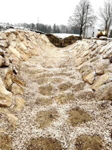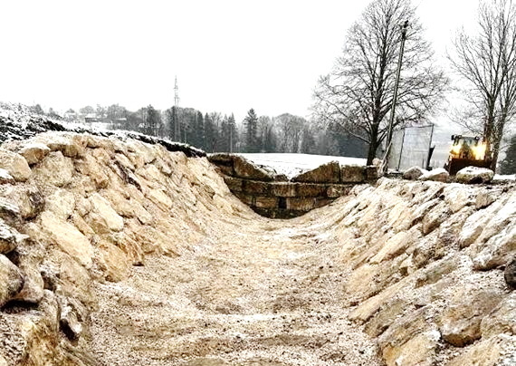 Der Graben hatte erstmals beim Hochwasserereignis 2020 große Mengen an Kies und Geröll mit sich gebracht, die dann Durchflüsse verschlossen. Daher suchten sich die Wassermassen über die Straßen, Wiesen und Felder ihren Weg bis hinunter nach Osterham. Da der Graben seitdem immer wieder bei Starkregenereignissen Geröllmengen mit sich führte, wurde unterhalb von Hafenstein nun ein Kiesfang eingebaut. Die Kosten der Maßnahme belaufen sich auf rund 70.000 €, von denen das Wasserwirtschaftsamt 25.000 € übernimmt. Weiter laufen derzeit die Ausschreibungen für das vom Gemeinderat verabschiedete Starkregenkonzept. Dieses Konzept soll nach der Fertigstellung dann Schwachpunkte im Gemeindegebiet sowie Lösungen aufzeigen.