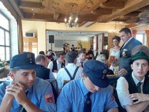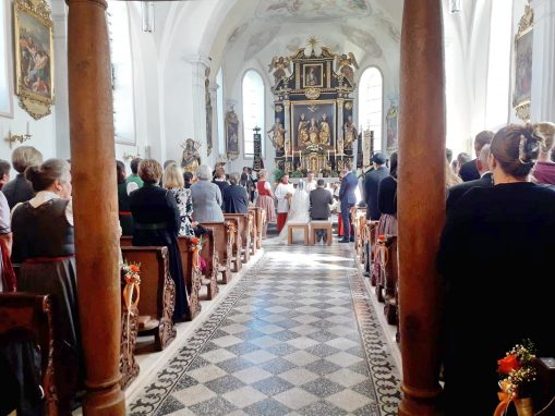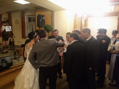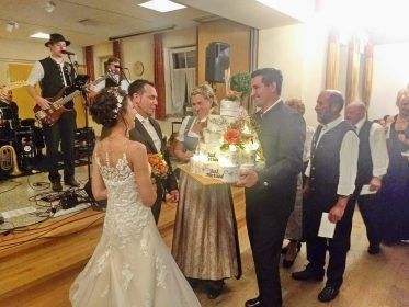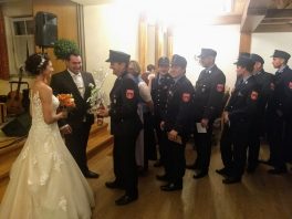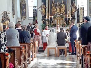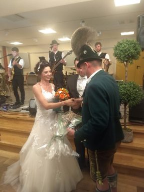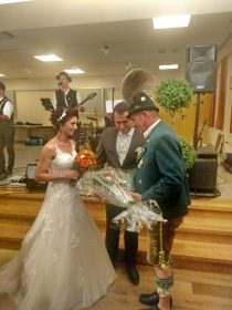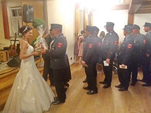 Eine Woche nachdem Nachbarn, Freunde und Vereinskameraden in Prien-Siggenham einen Hochzeitsbaum aufgestellt hatten, traten Jenifer und Bernhard Summerer in der Filialkirche St. Salvator vor den Traualtar. Die Trauung hielt Pfarrer Josef Steindlmüller, hernach bildete die Feuerwehr Atzing beim Auszug aus der Kirche ihrem stellvertretenden Kommandanten und seiner frisch vermählten Ehefrau ein aus Wasserschläuchen gestaltetes Spalier. Die weltliche Feier mit Hochzeitslader Sebastian Strohmayer und mit den Anzwies-Musikanten aus Atzing fand im Gasthaus Zur Post in Rohrdorf statt.