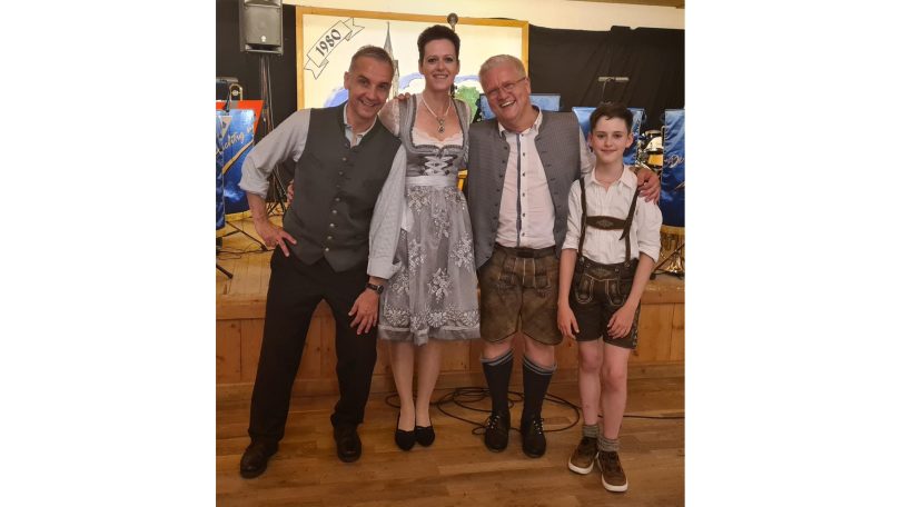 Gerade weil es nicht selbstverständlich ist, daß man in der vergangenen Corona-Zeit Gelegenheit zum Feiern bekommt, war es ihm wichtig, ein Fest zu organisieren, welches jedem lange in Erinnerung bleiben sollte. Selbst seit seinem 17.Lebensjahr als Hochzeitslader unterwegs, Vereinsmitglied im Trachtenverein und politisch engagiert, fand sich als Gratulant auch Sebastian Friesinger. Familie, Freunde, Hochzeitsladerkollegen, Kunden, welche zu Freunden wurden, Arbeitskollegen. Sogar ein Bus wurde organisiert, damit sich jeder das Glas Wein oder „de oane oder andane Hoibe“ schmecken lassen konnte. Alle wurden durch eine 8 köpfige Musikgruppe, de Richtig´n mit Hans Gschwendtner unterhalten, was zum Tanzen einlud, nach dem Hans Hollerieth mit seiner Frau Nina den ersten Tanz eröffnete. Freunde überraschten ihn mit einer kleinen Theatereinlage und sein langjähriger Freund, Arbeits-und auch ehem.Hochzeitsladerkollege und heute Kabarettist Stefan Kröll, ließ es sich nicht nehmen, um zu diesem Anlaß vorbei zu kommen und begeisterte mit einer Kabaretteinlage den ganzen Saal.