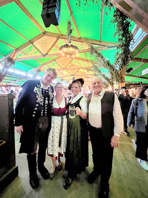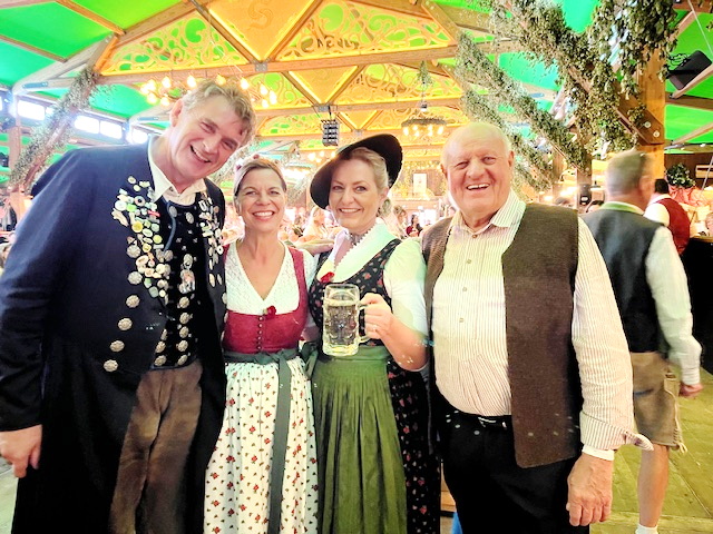 Unsere Aufahme zeigt die beiden Hochzeitslader zusammen mit der Schützenlisl-Moderatorin Traudi Siferlinger und mit der Sängerin und Musikantin Traudi Vordermaier. Das Festzelt Schützenlisl in der Oidn Wiesn hat noch bis Sonntag, 6. Oktober offen – dann ist wieder Pause.