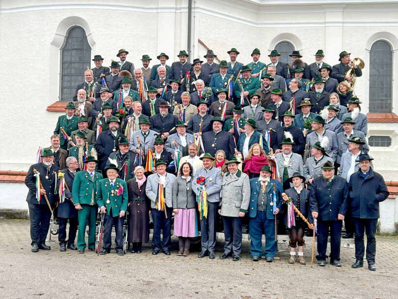 Zur Tradition gehört es, dass der Morgen mit Musik und mit Weißwürsten beginnt. Alsdann ging es nach Antholling, dort wurden die Hochzeitslader von der Bairer Musi in die Kirche eingespielt. Die Gottesdienstgestaltung lag in den Händen von Pfarrer Manuel Kleinhans, dem Bergangerer Männerchor und dem gastgebenden Hochzeitslader Bernhard Sedlmaier, der für die Lesung und Fürbitten sorgte. Der Aufnahme vom Gruppen- und Erinnerungsfoto folgte die Rückfahrt nach Netterndorf, dort spielte die Stoabugglmusi die gesamte Gesellschaft in das Wirtshaus hinein. Drinnen erinnerte nach der Begrüßung der Chronist der Gemeinschaft Christian Glas, Bürgermeister von Eggstätt unter anderem an neun verstorbene Hochzeitslader seit der letzten Zusammenkunft vor Corona. Bürgermeister Martin Riedl stellte seine Gemeinde Baiern im südlichen Landkreis Ebersberg in Versform vor. Für den Landkreis sprach Zweiter Landrat Walter Brilmayer Grußworte, alsdann ging es mit Witz, guter Laune und gegenseitigem Aussingen sowie bei bester Bewirtung hinein in einen langen Hochzeitslader-Nachmittag.