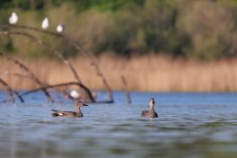 Bei wechselhaften Wetter gab es an der Prienmündung einiges zu entdecken. Die fliegende Mittelmeermöwe brütet derzeit noch erfolgreich, während der Höckerschwan sein Gelege direkt am Ufer aufgeben musste. Die beiden männlichen Schnatterenten werden wohl auch Junggesellen in der Saison bleiben, während die Knäkente hoffentlich den Brutpartner unterstützt. Heuer konnte ich schon ausgiebig das erfolgreiche Werben der Knäkenten an der Prienmündung beobachten.