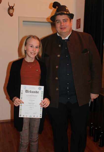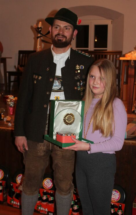 Christina Stockmeier von den Hubertusschützen Höslwang ist die bisher letzte in der langen Reihe der Lichtgewehrgaukönige des Schützengaues Chiemgau Prien. Als beste von 81 Mädchen und Buben aus 15 der 20 Gauvereine holte sie sich beim 14. Lichtgewehr- und Lichtpistolen-Gauschiessen auf der Schiessanlage der „Elfer“ von Wildenwart die heiß begehrte Scheibe der Lichtgewehrgaukönigin. Bei der Siegerehrung im Saal der Schlosswirtschaft überreichte Gaujugendleiter Andreas Wimmer der besten Schützin die Siegerscheibe; auf den weiteren Plätzen folgten Julian Vasilcanu, Franz Wörndl und Sebastian Semmler, alle von der SG Hittenkirchen.