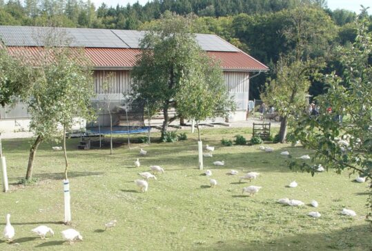 Bild 4: Die Bio-Gänse fühlen sich auf der Weidefläche neben dem neugebauten Milchviehlaufstall sichtlich wohl.