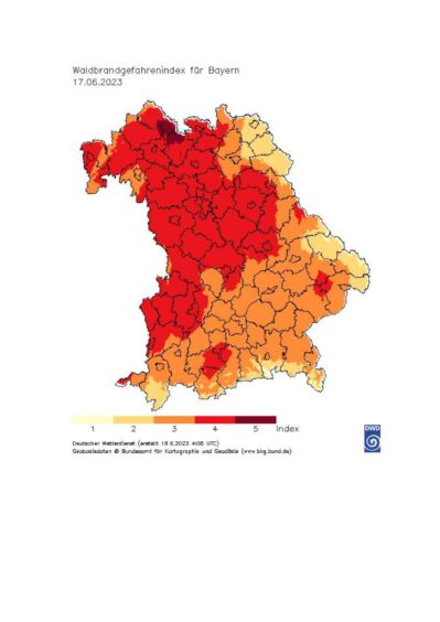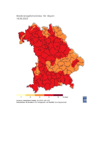 Bericht: Bayerisches Landwirtschaftsministerium – Foto: PantherMedia / Gilitukha) und eine aktuelle Karte des Deutschen Wetterdienstes mit den Gefahrenstufen im Freistaat