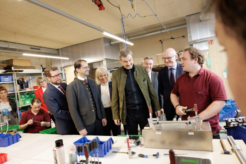 Wie gelingt echte Teilhabe am Arbeitsleben für Menschen mit Behinderung? Welche Chancen bietet ein inklusiver Arbeitsmarkt – und welches Angebot gibt es bereits in Bayern in den Einrichtungen? Diese Fragen standen heute im Mittelpunkt des Besuchs von Ministerpräsident Dr. Markus Söder und Arbeitsministerin Ulrike Scharf bei den Caritas Wendelstein Werkstätten am 2024 neu eröffneten Standort Oberfeld in Rosenheim.