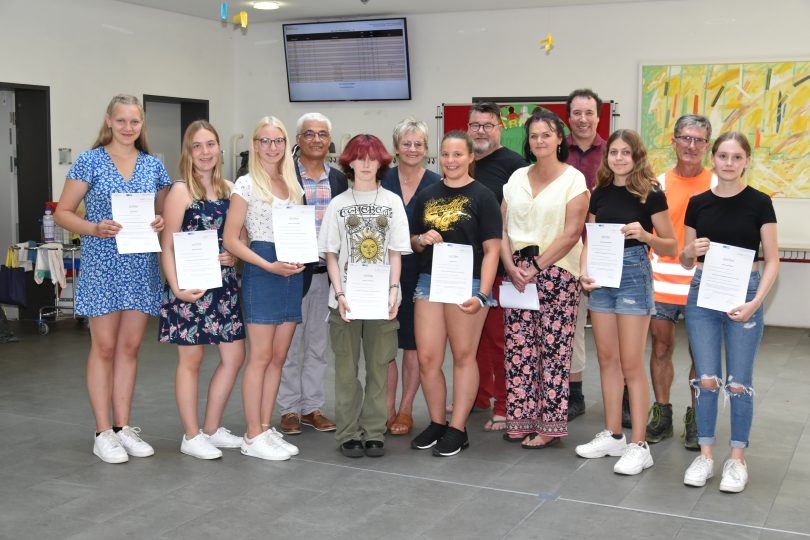 Bericht und Foto: Schülerforschungszentrum Berchtesgadener Land – Die Schülerinnen der MRS Freilassing mit ihrem Schulleiter Ulrich Anneser, Lab2Venture Beauftragte Petra Moderegger und Kursleiter Stefan Hager vom Schülerforschungszentrum, von der Stadt Freilassing die Leiterin des Kinder & Jugendbüros Bernadette Sattler, vom Fachbereich Medien Michael Schweiger und der Stadtgärtner Anton Neuer