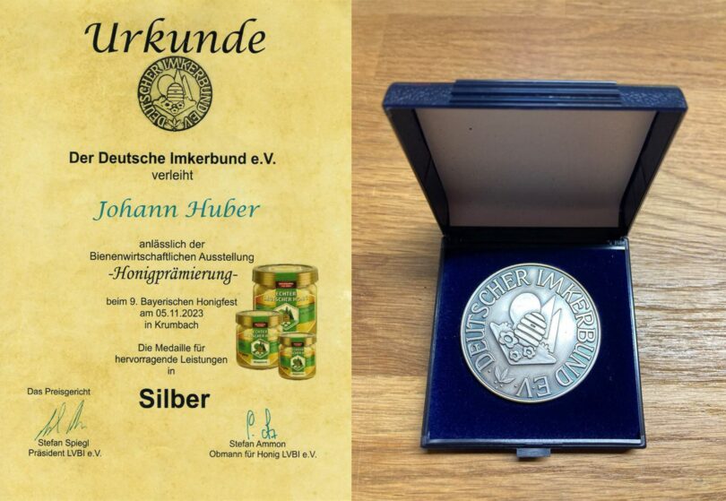 Geschäftsführer Johann Huber von der Bio-Käserei Anderlbauer in Frasdorf wurde bei der Bayerischen Honigprämierung in Krumbach mit der Silbermedaille ausgezeichnet. Die Ehrung erfolgte im Rahmen des 9. Bayerischen Honigfestes im November letzten Jahres. Der Deutsche Imkerbund e.V. verlieh ihm diese Auszeichnung als Anerkennung der qualitativ hochwertigen Imkerarbeit seines Betriebes.