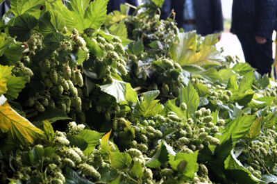 Trotz des regnerischen Wetters fanden sich zahlreiche Besucherinnen und Besucher aus nah und fern auf dem Betriebsgelände ein. Besonders erwähnenswert war eine Gruppe aus der Rosenheimer Region, die die weiteste Anreise auf sich genommen hatte. Zur Begrüßung wurden die Gäste mit einem erfrischenden Umtrunk mit Hopfensecco empfangen.