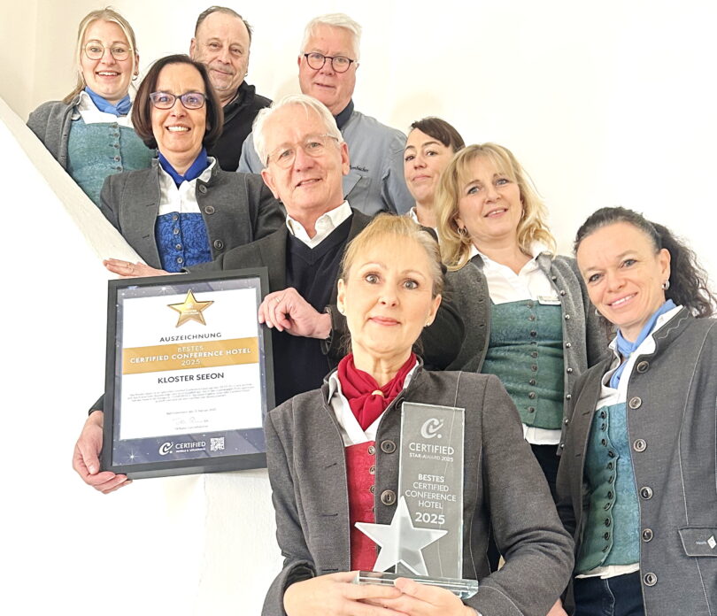 Bericht und Foto: Kloster Seeon – Geschäftsleiter Gerald Schölzel und die Abteilungsleiter von Kloster Seeon freuen sich über die Auszeichnung als „Bestes Certified Conference Hotel“ Deutschlands