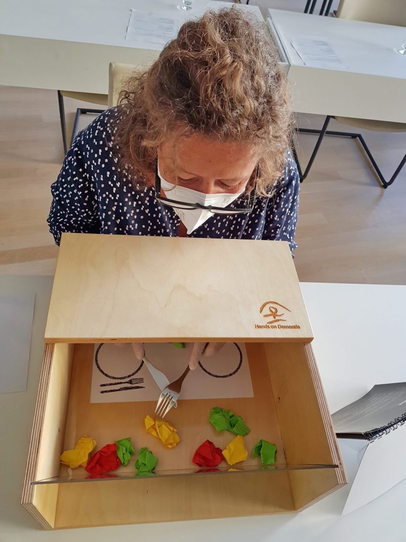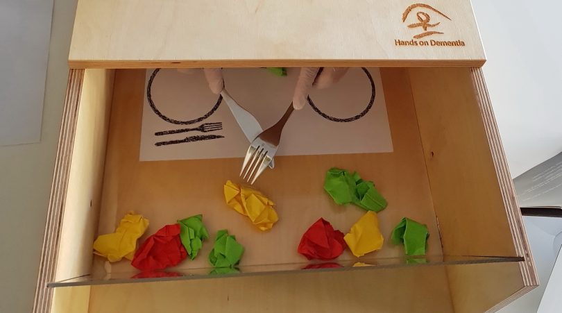 Darüber hinaus informierte der Autor, Humortherapeut und Demenzexperte, Markus Proske, in seinem Fachvortrag „Demenz – Humor kann helfen“, zu einem möglichen humoristischen Zugang zu der Erkrankung. Menschen mit Demenz müssen mit vielfältigen belastenden Emotionen umgehen lernen. Zu spüren, wie die persönlichen Leistungen und das „Ich“ sich verändern, ist für die Betroffenen in den ersten Phasen der Demenz bedrohlich und bedrückend. Deshalb brauchen Betroffene ein positives Umfeld und Emotionen, die ihnen guttun. Bewusst heiter sein können und mit den eigenen Möglichkeiten des Humors Betroffene zu begleiten, bedeutet, Perspektiven zu wechseln, belastende Situationen aus heilsamer Distanz betrachten lernen und so zu neuer Lebens- und Arbeitsfreude zu gelangen. Ziel des Vortrags war es, die Teilnehmerinnen und Teilnehmer zu stärken, um in Zukunft „bewusst heiter“ ihren Umgang mit Menschen mit Demenz zu meistern. Im Anschluss konnten die Teilnehmenden im interaktiven Weg „Hands-on Dementia“ zudem begreifen lernen, wie sich die Symptome einer Demenz anfühlen können, und wie es ist, einfache Handlungen nicht mehr umsetzen zu können. Wenn Gewohntes nicht mehr gelingen will, kann sich schnell Verzweiflung und Schamgefühl einstellen. Durch das Erleben der eigenen intensiven Emotionen soll sich so ein besseres Verständnis für die Erkrankten entwickeln.