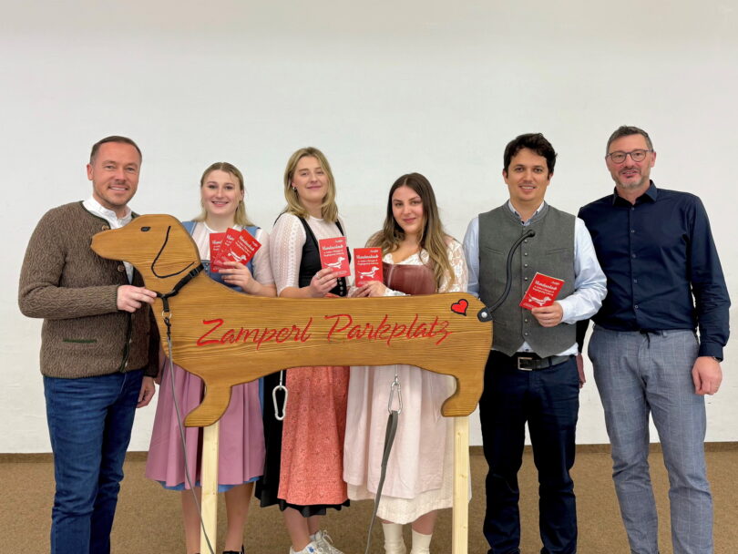 Die Auszubildenden Anna Lampersberger (Tourist Info Aschau i. Chiemgau), Sissy Zirlik (Tourist Information Bad Tölz), Josephine Benoist (ADAC) und Christian Wauer (Achental Tourismus) stellten ihre Arbeit zum Thema „Hundeurlaub“ in Aschau i. Chiemgau und im Bergsteigerdorf Sachrang vor. Das kostenlose Faltblatt ist ab sofort in den Tourist Infos Aschau i.Chiemgau und Sachrang erhältlich, Tel. 08052/90490, www.aschau.de.