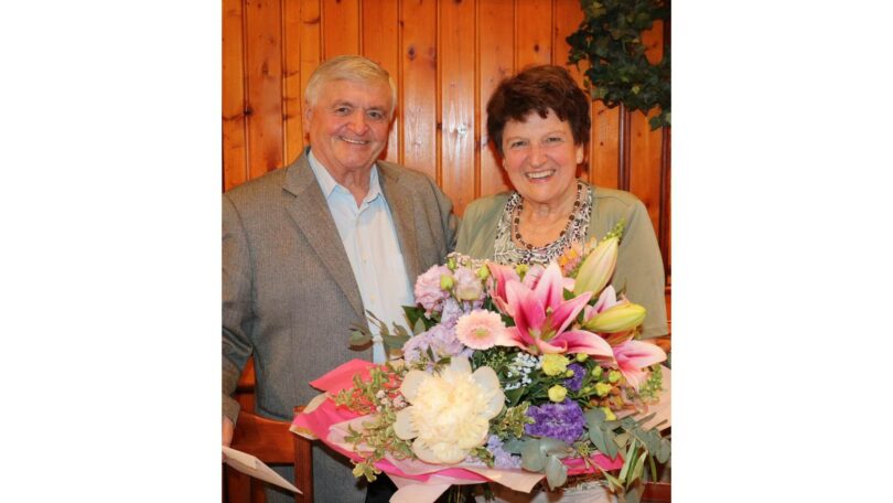 Bildunterschrift: Die erste Vorsitzende des Helferkreises für die Diözese Ternopil Katharina Schmid mit ihrem Stellvertreter Fritz Tischner.