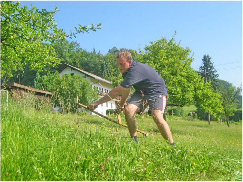 Foto: Hötzelsperger – Junger Landwirt beim Mähen am Samerberg