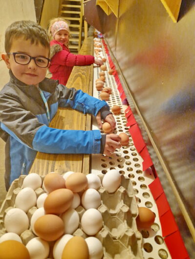 Ein Erlebnis für “Groß” und “Klein” ist es, die nestfrischen Eier im Legegang des Hofladen Wastlhof in Elperting selber einzusammeln.