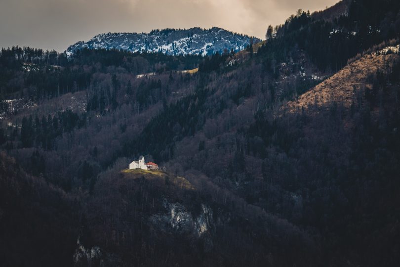 Die Peterskirche auf dem Petersberg bei Flintsbach im Inntal sonnt sich – bei dieser Aufnahme ganz besonders – nach den umfangreichen Restaurierungsarbeiten und nach der Abnahme des Aussengerüsts im Abendlicht. Hoch über dem Inntal ist die Wallfahrtskirche nicht nur ein beliebtes Ziel, sondern auch ein Blickfang in jenden Momenten, an denen sich die Sonne noch kräftig scheint, ehe sie kurz darauf hinter den Bergen verschwindet.