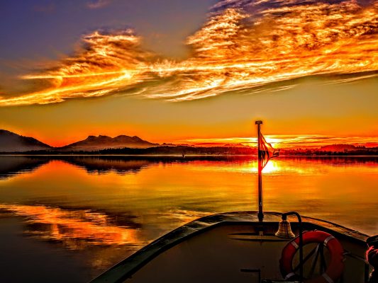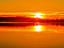 Ein überaus starkes Abendrot fing der Kapitän der Chiemsee-Schifffahrt am Donnerstagabend ein als er mit dem Schiff in Richtung Prien unterwegs war. Die Sonnen- und Farbkraft überzog dabei für kurze Zeit das gesamte Seen- und Landschaftsbild.
