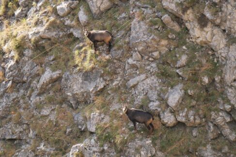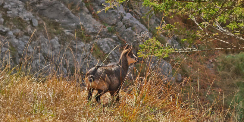 In den Wäldern lassen sich die Gämsen im dunklen Winterkleid blicken und genießen ebenfalls die wärmende Sonne. Glück hatte ich neben den vielen tollen Impressionen auch noch mit dem kurzen Besuch eines Weißrückenspechts, welcher eine wundervolle Zeigerart für intakte Bergwälder ist.