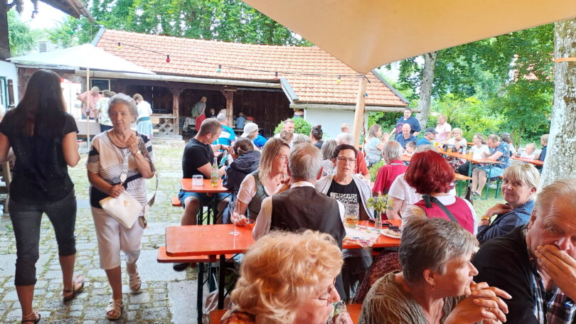 Interessiert wurde den Imkern beim Honig schleudern über die Schultern geschaut, Honig geschleckt und sich mit Produkten aus der Imkerei eingedeckt. Von den Führungen durch die angrenzenden Obstgärten waren die Besucher sehr beeindruckt. Mit Martin Landes, vom Landratsamt Rosenheim, waren die Führungen durch den Spindelgarten und die Streuobstwiese ein wahres Erlebnis, mit seinem Wissen und seiner charmanten Art verstand es der junge Streuobstberater die Zuhörer zu begeistern und mit in die Welt der heimischen und alten Apfel- und Birnbaum-Vielfalt zu nehmen. Das Team des Kulturvereins hat mit vielen selbstgebackenen Kuchen und Torten, brühfrischen Kaffee, kühlen Bieren und alkoholfreien Getränken für das leibliche Wohl und einen angenehmen Aufenthalt der Besucher gesorgt am Hilgerhof gesorgt.