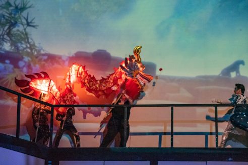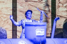 Der Proben-Auftakt für Immlings Kinderstück „Die Zauberflöte“ startet bunt, voll Witz und fantastischer Visionskraft. Unter der Regie von Intendant Ludwig Baumann und der musikalischen Leitung von Iris Schmid darf man ein Feuerwerk für die Sinne erwarten: Martial-Arts-Einlagen, chinesische Drachen, Zyklopen und das inmitten fantastischer Landschaftsbilder à la „Herr der Ringe“ und „Game of Thrones“, gestaltet von Ludwig Baumann und dessen Sohn David Goldberg.