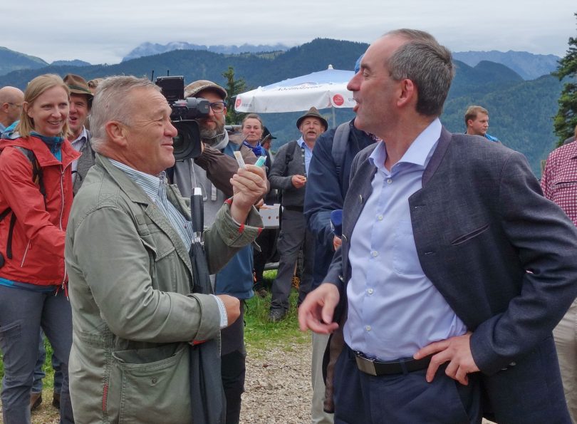 Die heurige Hauptalmbegehung des Almwirtschaftlichen Vereins nutzte CSU-Landtagsabgeordneter Klaus Steiner aus Übersee, um mit stellvertretendem Ministerpräsidenten Hubert Aiwanger (Freie Wähler) über das Thema „Impfen“ zu sprechen. Als er dabei eine Spritze zeigte, machte dies den Eindruck einer heiteren Begegnung und eines lustigen Dialoges. „Aber es war mir nicht zum Spaß, ich hatte Corona und habe noch unter den Spätfolgen zu leiden“, so Klaus Steiner nach dem Gespräch mit dem sichtlich überraschten Wirtschaftsminister und selbst erklärten Impfverweigerer. Ernst fügte der Abgeordnete noch hinzu: „Aus meiner Sicht ist es für einen politisch so hoch positionierten Mann, aber auch für Jedermann nicht verantwortbar, das Impfen zu verweigern, denn schließlich ist jeder Nicht-Geimpfte ein gesundheitliches Risiko für die gesamte Gesellschaft“.