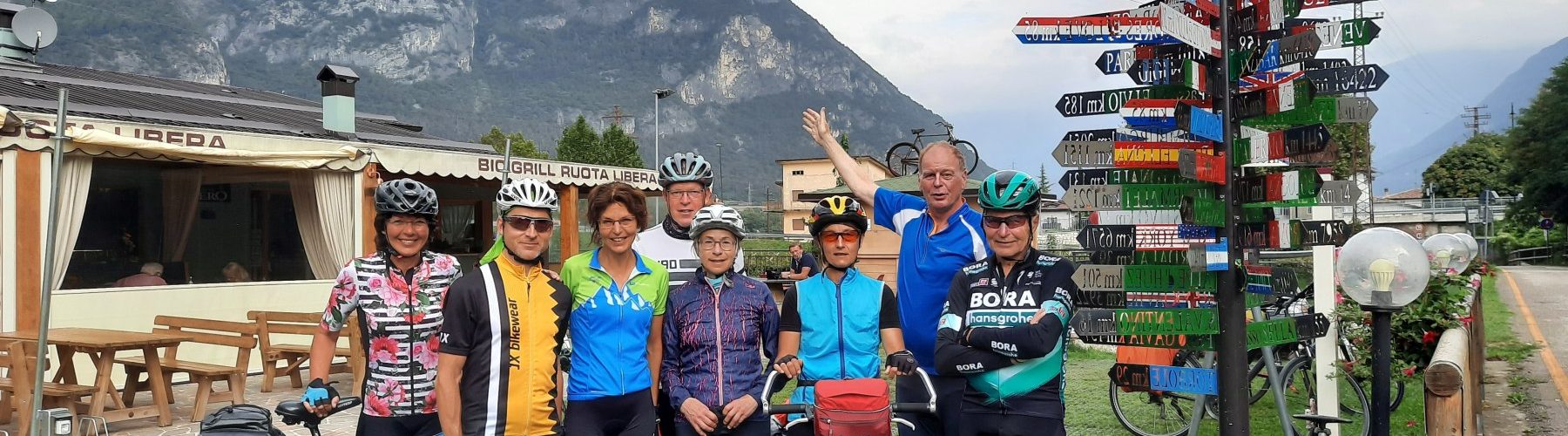 „Eine einfache Alpenüberquerung mit dem Tourenfahrrad“ lautete das Motto einer geführten Fahrradtour von Rosenheim bis zur Partnerstadt nach Lazise. Dem Aufruf „Wer radelt mit?“ von Reinmund und Josefine Hobmaier aus Prien folgte eine bunt gemischte 7-köpfige Radlertruppe. Mit dabei war u.a. Thomas aus Fehmarn an der Ostsee, der die weite Anreise bis Rosenheim nicht scheute und Willi war mit seinen 79 Lenzen das älteste Glied in der Gruppe.