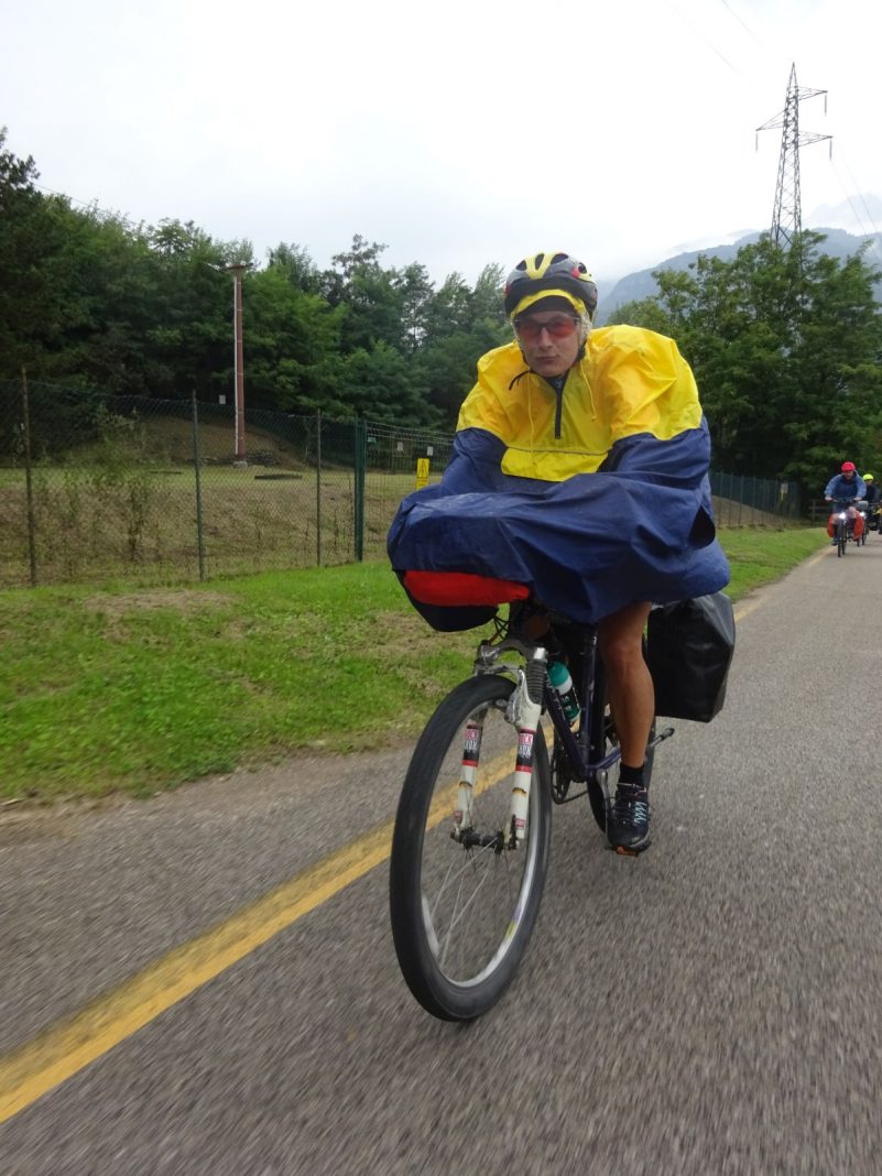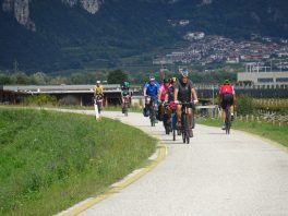 Tags darauf regnete es beim Aufbruch. Eigentlich hätte eine Alternativroute für die anspruchsvolleren Radfahrer über Kaltern und den 1.362m hoch gelegenen Mendelpass bis zum Ziel nach Trento führen sollen, das fiel dann leider im wahrsten Sinne des Wortes ins Wasser. So blieb die ganze Gruppe die 75km zusammen auf dem Etschradweg bis Trento. Zu regnen hörte es zum Glück kurz nach Bozen auf, aber dafür forderte ein heftiger Gegenwind die ganze Kraft der Radler. Von Trento waren alle sehr begeistert, zumal es den meisten unbekannt war. Die historische Altstadt mit seiner Kathedrale im Zentrum, der großen Piazza Duomo und den vielen Palazzi ist absolut sehenswert.