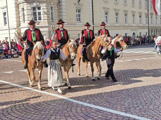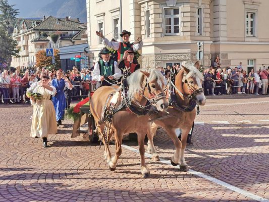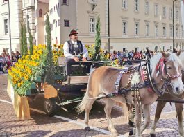 Ganze 43 Musik-, Blas- und Trachtenkapellen sowie schön-geschmückte Fest- und Motivwägen beteiligten sich beim heurigen Traubenfest in Meran in Südtirol. Von diesem farben- und klang-prächtigen Festtag dieser Bilderbogen mit herzlichen Grüßen an die Freunde in Südtirol.