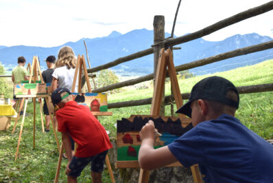 FLM_Glentleiten_Altholz_bemalen.jpg: Ihre Kreativität können Kinder beim Bemalen von Altholz ausleben. In diesem Kurs sind noch Plätze frei. Bildquelle: Bezirk Oberbayern, FLM Glentleiten