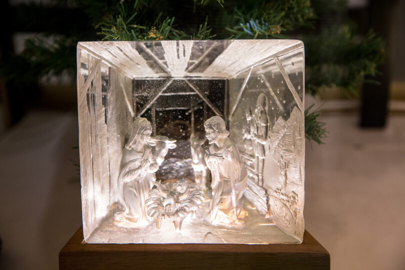 Bericht und Foto: Prien Marketing GmbH – Von der minimalistischen Krippe bis hin zur detailgetreuen Krippenlandschaft gibt es in den Schaufenstern der Marktgemeinde viel zu entdecken. Die handgefertigte Krippe aus Glas stellt ein Geschäft in der Bahnhofstraße aus.
