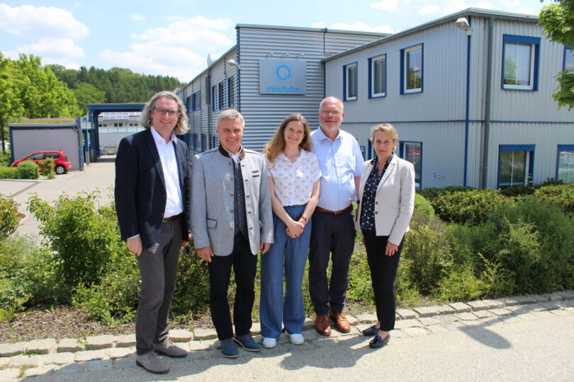 „Firmen wie Minitüb sind ein Mehrwert für unsere Region: insbesondere unsere jungen Bürger profitieren von hochqualifizierten Arbeitsplätzen und somit auch guten Zukunfts- und Ausbildungschancen.”, betont Landrat Peter Dreier bei seinem Besuch in Tiefenbach. Der Betrieb beschäftigt Ingenieure, Tierärzte und Forscher, die gemeinsam die in der Tierzucht angewandten Technologien weiterentwickeln. Waren es im Jahr 2002 noch 53 Mitarbeiter, so zählt das Familienunternehmen inzwischen weltweit über 400 Mitarbeiter, davon 150 im Landkreis Landshut. Das Unternehmen verfügt über zehn Tochterunternehmen auf der ganzen Welt. Derzeit planen die Geschäftsführer Dr. Christian Simmet, Christa Simmet, Rudolf Simmet und Katharina Rohrmüller ein weiteres Verwaltungsgebäude für rund 70 Arbeitsplätze auf dem Areal in Tiefenbach. Erst vor wenigen Jahren ging das neue Logistikzentrum in Betrieb, aktuell befindet sich das Technik- und Entwicklungszentrum im Um- bzw. Erweiterungsbau. Ziel ist es, unter anderem größtenteils stromautark zu werden.