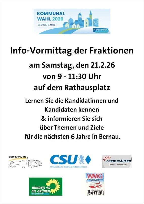 Kommen Sie gerne zum gemeinsamen Infostand aller Fraktionen am Samstag, den 21.2.26 von 9 – 11:30 Uhr!