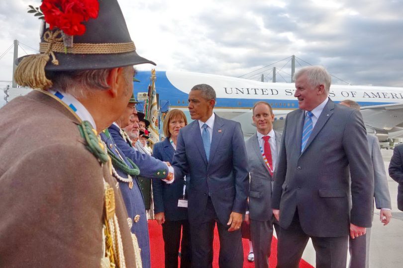 Archiv-Foto: Hötzelsperger – Erinnerung an den G7-Gipfel mit Empfang der Staatsgäste auf dem Flughafen München – Bayer. Gebirgsschützen begrüßen den amerikanischen Präsidenten Barack Obama