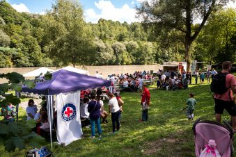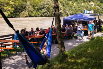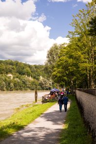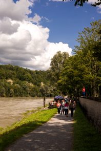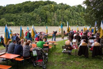 Am Sonntag Nachmittag und nicht wie ursprünglich geplant am Samstag konnte das Inndammfest stattfinden. Der Sturm am Freitag Abend hatte deutliche Spuren auch auf dem Inndamm hinterlassen (siehe Foto). Doch am Sonntag war wieder alles fürs Fest vorbereitet. Die Organisatoren, die „Inndammbiber” hatten am Sonntag dann auch Glück mit dem Wetter. Gefeiert wurde mit diesem Fest ursprünglich die Hochwasserfreilegung der Altstadt. Allerlei kulinarische Schmankerl konnten sich die Besucher auf dem Hochwasserdamm rund um die Altstadt „erwandern“, die von den Vereinen an zahlreichen Verpflegungsstationen angeboten wurden. Es gabe Dutzende Kaffee-, Grill- und Brotzeitstände. Beim Förderverein der Wasserwacht konnten sich Kinder schminken lassen. Eine sehr beliebte Attraktion war die Kletterwand der Realschule. Der Wasserburger Alpenverein und die Wasserburger Bergwacht betreuten gemeinsam alle, die an der Kletterwand der Realschule hoch hinaus wollen.