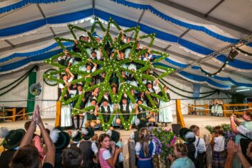 Allein der Blick auf die festlich hergerichtete Bühne bei Auftanz, Kronentanz oder Sterntanz (mit 24 Paaren besetzt mit „Alt-Aktiven“) war es wert, zum Festheimatabend des Trachtenvereins Immergrün nach Pfaffenhofen zu kommen, um begeistert Eindrücke von Auftrittsfreude und Heimatliebe zu sammeln. Festverein und Bayerischer Inngau-Trachtenverband sowie alle Mitwirkenden boten im vollen Festzelt Brauchtums-, Trachten- und Musikpflege vom Feinsten.