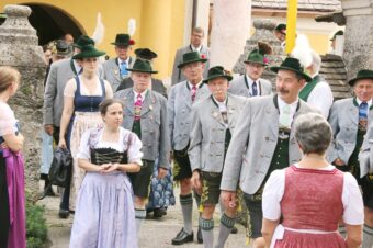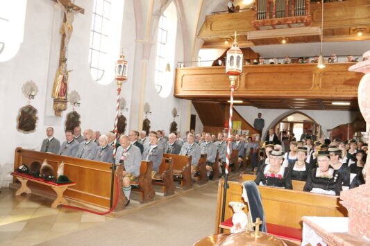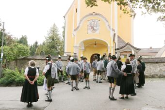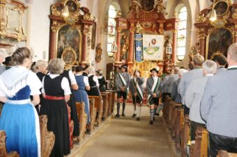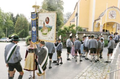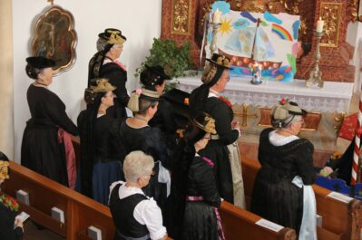Nicht wie gewollt und geplant eine Fußwallfahrt nach Schwarzlack machten, sondern wegen der Wetterverhältnisse einen Dank- und Bitt-Gottesdienst feierten die Trachtlerinnen und Trachtler des Bayerischen Inngau-Trachtenverbandes.