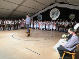 Der Heimatabend der Landestagung des bayerischen Trachtenverbandes brachte den begeisterten Zuschauern das Leben eines Inngautrachtlers „von der Wiege bis zur Bahre“ näher. Der Inngaugeist, gespielt von Martin Wollmann, begleitet das Leben des kleinen Hanse, dessen Eltern zur Geburt nach gutem Brauch einen Weisertwecken erhalten. Im Anschluss erleben die Zuschauer die ersten Musik -und Plattlproben, gespielt von Hans Baumgartner mit seinen Kindern und der Oberaudorfer Kindergruppe mit dem Dätscher.