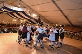 Hanse wird älter und der immer begleitende Inngaugeist gibt ihm zu verstehen, dass es an der Zeit ist, die Erde zu verlassen. In Brandner-Kasper-Manier handelt sich Hanse als letzten Wunsch aus, den Stern-Kronen-Tanz der Gaugruppe sehen zu dürfen. Diesem Anliegen gibt der Inngaugeist gerne nach und es folgt der Auftritt. Mitten im Tanz betritt Gauehrenvorstand Walter Weinzierl in Gestalt des Petrus die Bühne und zeigt Hanse das Paradies. Dieser ist ganz begeistert, erinnert ihn das Paradies doch an seine Heimat im Inngau, denn „näher ois do im Inngau, kosd am Paradies fast ned sei“ erklärt Petrus. 1. Gauvorplattler Sepp Brem bedankt sich nach der großen Schlussfigur bei allen Mitwirkenden und kann zu Recht stolz auf diesen außergewöhnlichen Heimatabend zurückblicken, der allen noch lange in Erinnerung bleiben wird. Zum Ausklang spielt die Mitteroim-Musi, die auch den Heimatabend musikalisch umrahmt hat, noch zu einigen Tanzrunden auf.