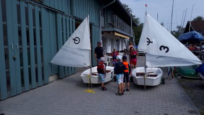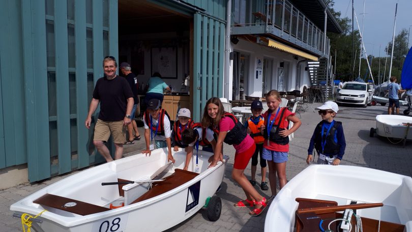 Kentern gehört zum Programm „Kentern ist cool“, ruft Julen seinem Trainer entgegen, nachdem er seinen „Opti“, ein typisches Anfängerboot, wieder aufgerichtet hatte. Bei hohen Temperaturen und gutem Wind waren 22 Kinder und Jugendliche begeistert von dem abwechslungsreichen Programm der Jugendwoche beim Priener Segelclub.