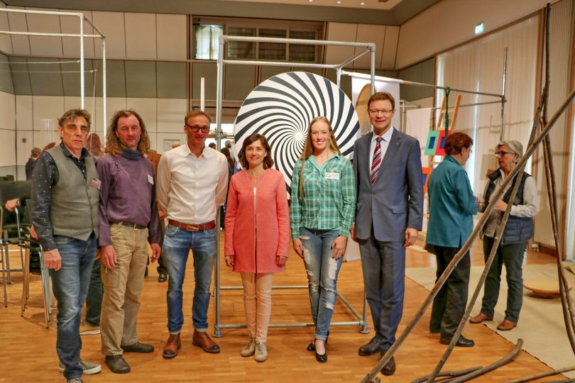 Gruppenfoto: (v.l.n.r.) Künstler Matthias Schenk von Schloß Freudenberg, Heilpraktiker Frank Pfeiffer, Allgemeinmediziner und Teamarzt der Snowboardnationalmannschaft Dr. med. Gerrit Sommer, Geschäftsführerin der Prien Marketing GmbH Andrea Hübner, Regions-Botschafterin und Profi-Snowboarderin Anke Wöhrer und Erster Bürgermeister Jürgen Seifert.